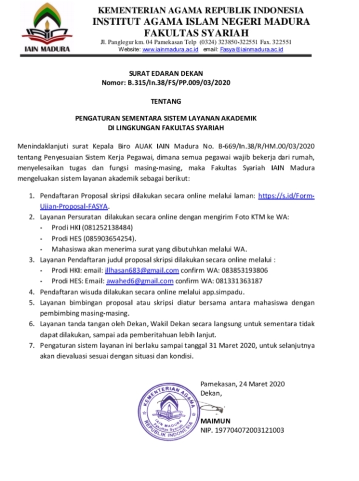 Surat Edaran Dekan Fakultas Syariah